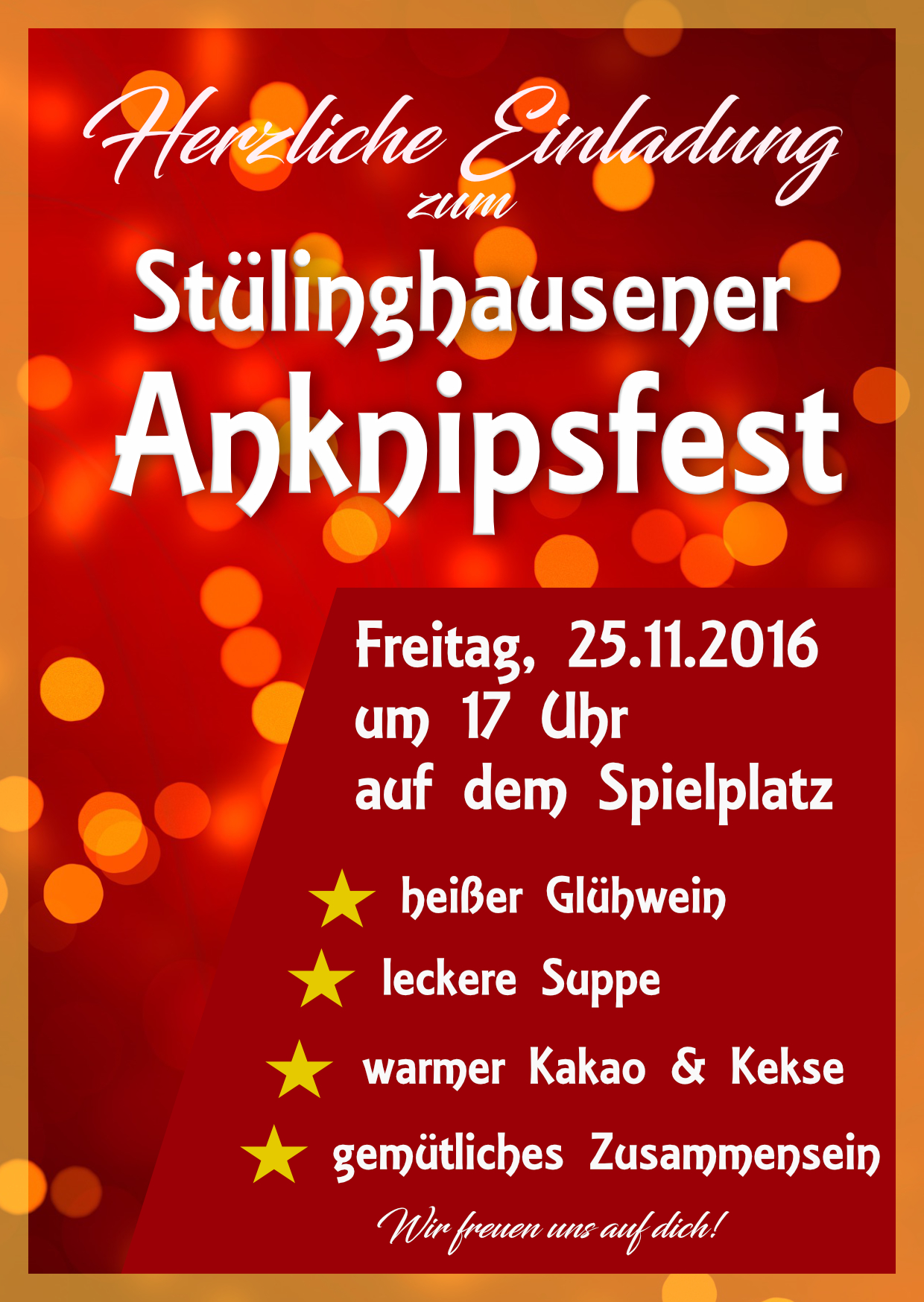 Das Anknipsfest findet am Freitag den 25.11. um 17 Uhr statt.